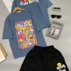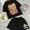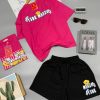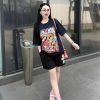 SET ĐÙI ÁO THUN PHOM RỘNG QUẦN DA CÁ IN HÌNH GẤU TRẺ TRUNG